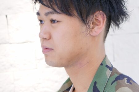 黒髪 束感 ツーブロック 刈り上げ ラクチン1分セット 無造作なスタイル! サイドはしっかりツーブロックになっているので毛量が多い方にもオススメ!ルーズな雰囲気のスタイリングですが、スタイリング次第ではスーツにもしっかり合わせられます!サイドからバックはおさえめにトップと前髪中心に動きを出してメリハリのあるスタイリングがオススメです