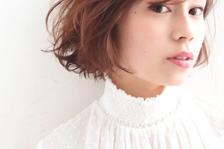 マッシュベースのショートスタイル。全体にワンカールのパーマをプラスして無造作な感じに。オレンジベージュで透明感を出して外国人風に♪クシュッとWAXを揉みこめば簡単に完成♪